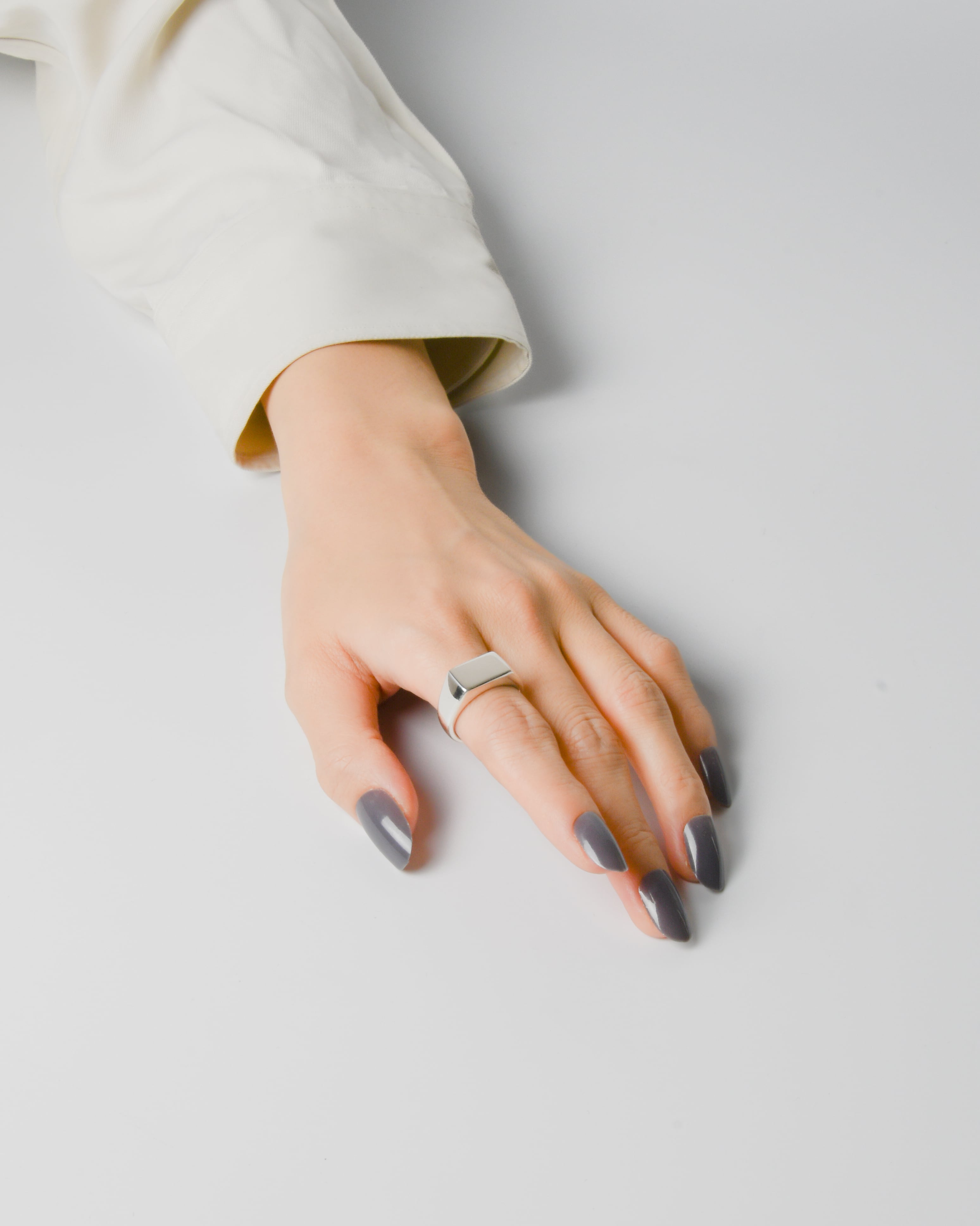 上品さとモダンなデザインが融合したシルバーリングです。シンプルながらも洗練されたデザインが特徴で、どんなスタイルにもマッチします。デイリーユースはもちろん、パーティーやイベントなど特別な場面でも素敵に輝きます。