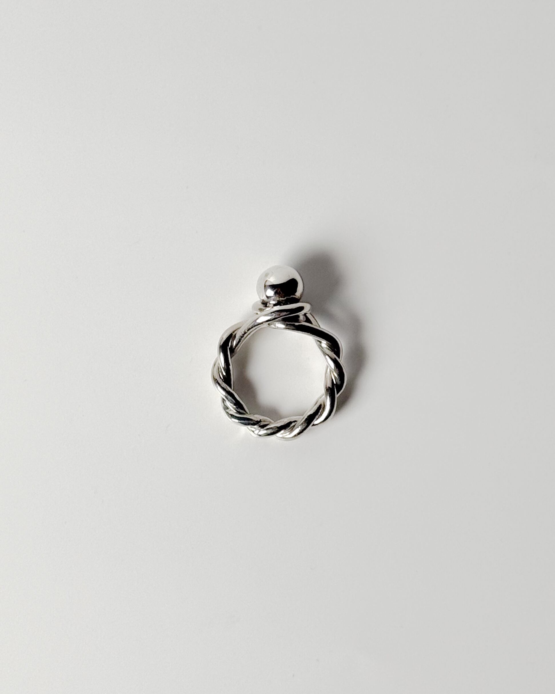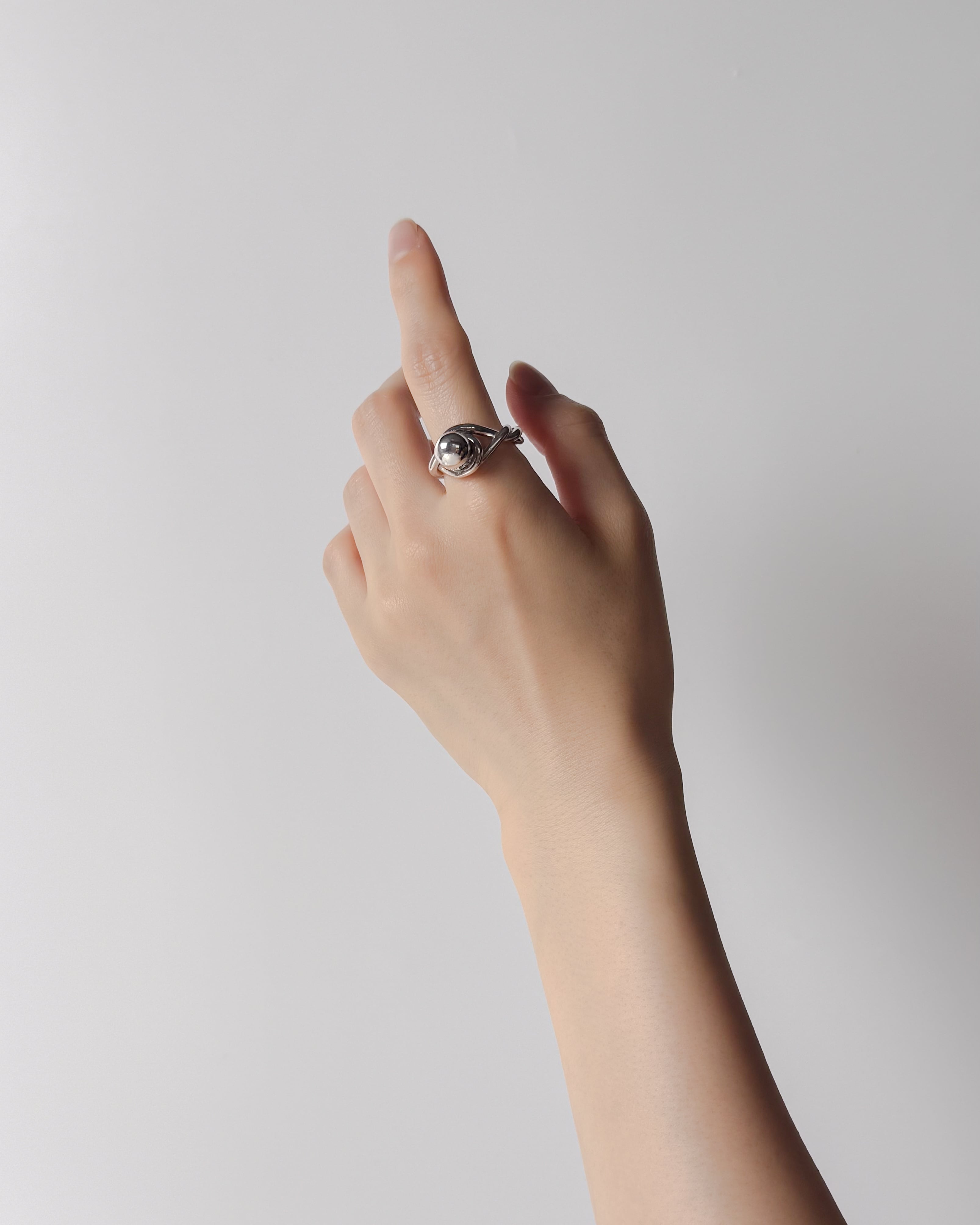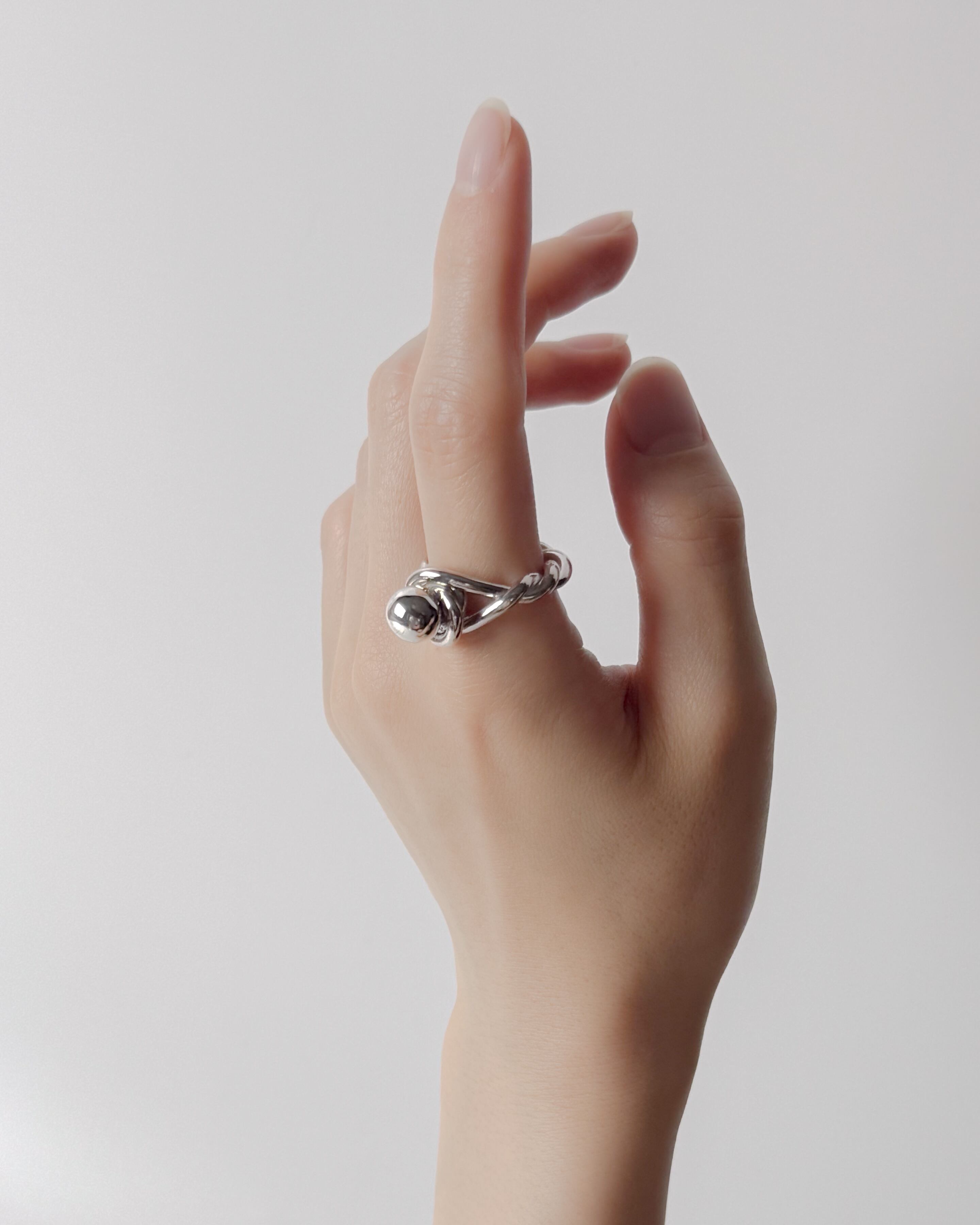 独創的な捻りが施されたデザインに、存在感のある球体がアクセントとなったこのリングは、上質なsilver925で作られています。ユニークなフォルムが印象的で、一味違ったスタイルを引き立てます。指にフィットする心地良さがあり、日常使いから特別なシーンまで、どんな場面でもおしゃれを演出します。
