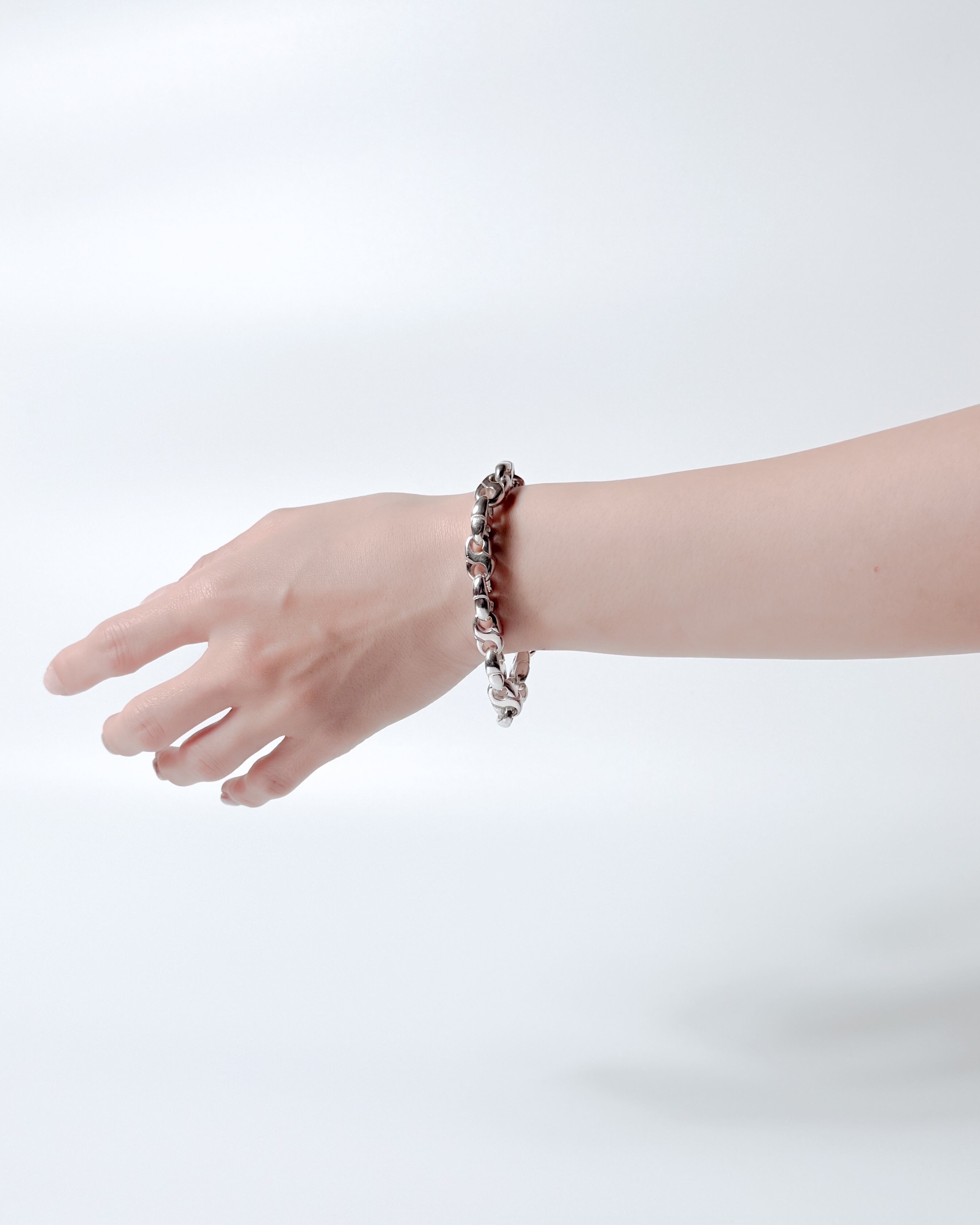 被りにくいデザインが特徴のこのブレスレットは、個性豊かなスタイルを楽しむ方にぴったりのアイテムです。洗練されたフォルムが手元をエレガントに演出し、普段使いはもちろん、特別なシーンでもあなたの魅力を引き立てます。