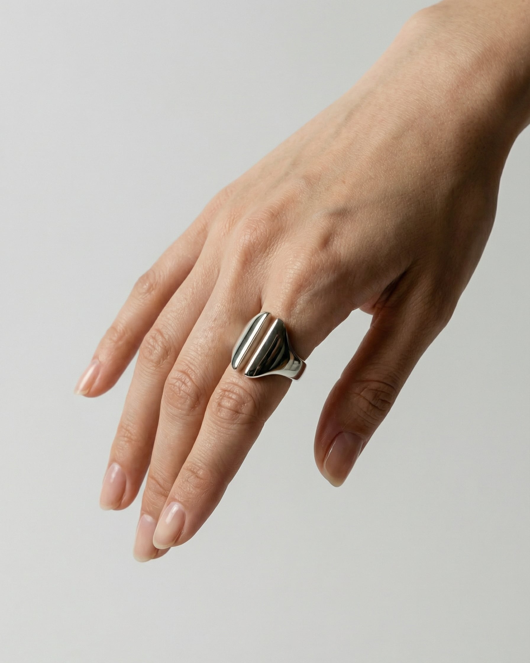 トップ部分が特徴的なこのリングは、ユニークで個性的なデザインが際立つアイテムです。洗練されたフォルムが指元を華やかに演出し、日常使いから特別なシーンまで幅広いスタイルにマッチします。